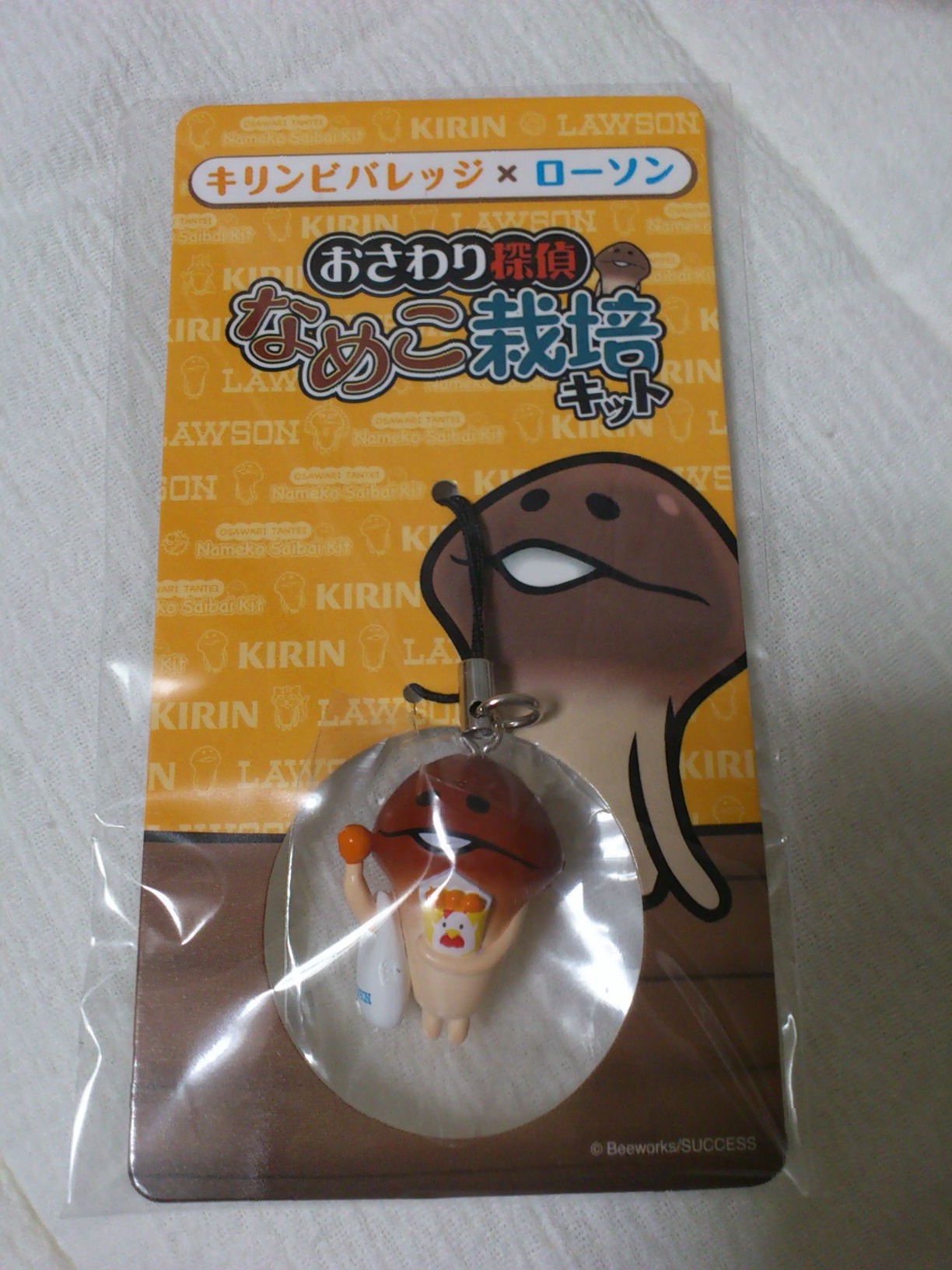 去年の夏ごろにキリンビバレッジとローソンの企画で当たった、「からあげくんなめこストラップ」 が届いたー!